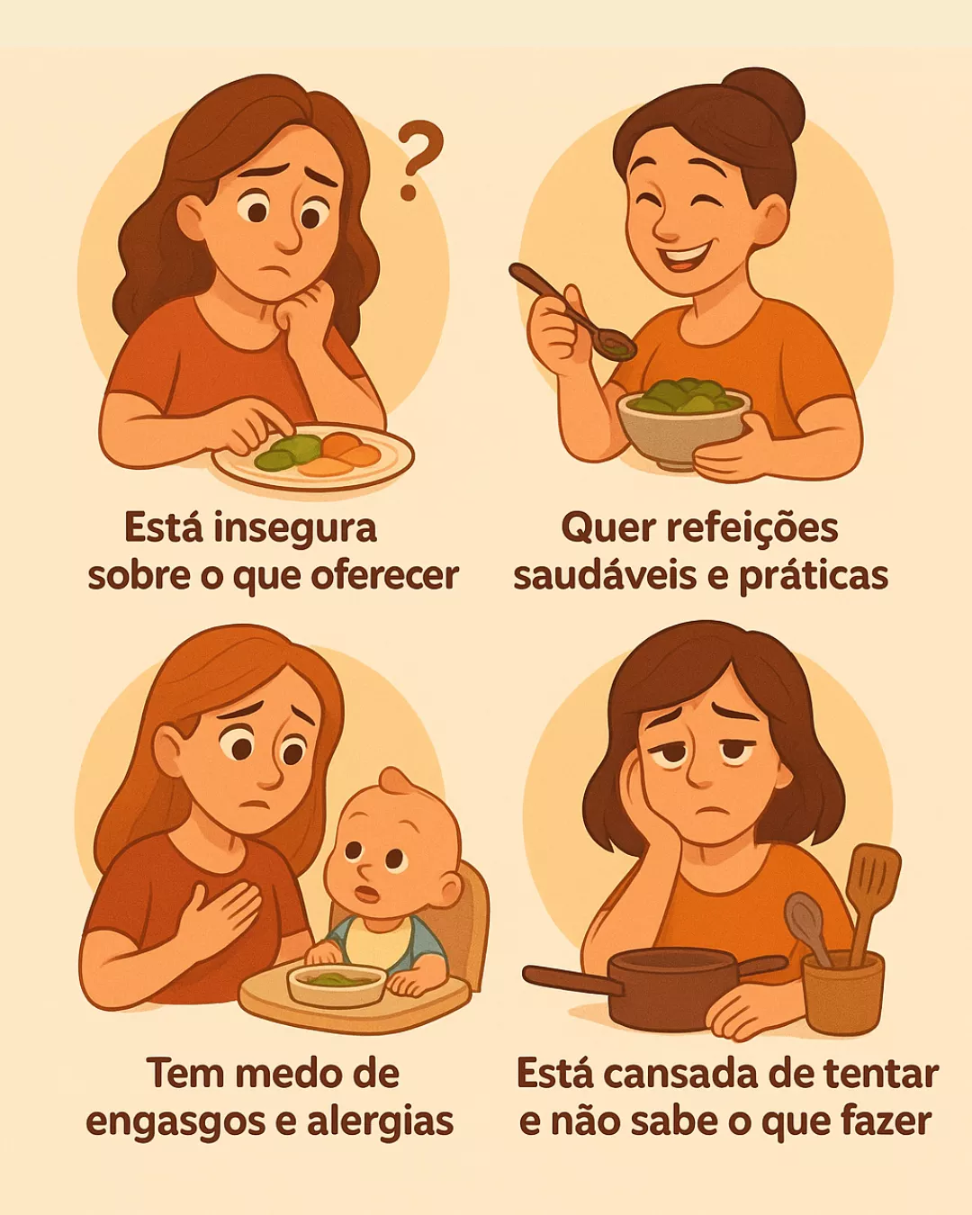 Um guia completo com mais de 260 receitas divididas por idade, orientações práticas e dicas que funcionam de verdade — tudo isso testado por milhares de mães.